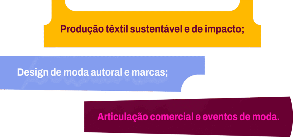 Voltado para empreendimentos de moda comprometidos com a prática sustentável, que buscam aprimorar soluções para resíduos têxteis (como upcycling), o uso consciente de insumos e o fortalecimento de uma cadeia produtiva baseada na economia circular e no impacto social positivo.